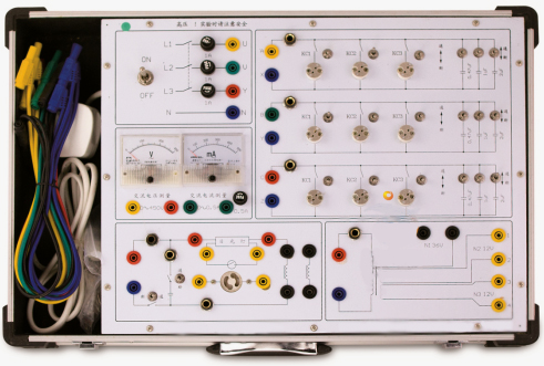 電工技術(shù)實驗箱主要是進行電工學(xué)及電路原理中的強電部分實驗,如單相交流電路、三相電路、日光燈電路實驗。本實驗箱由模塊單元和元件庫相結(jié)合的板面構(gòu)成,全部采用歐洲標(biāo)準(zhǔn)的安全插座和安全實驗導(dǎo)線,連線方便,接觸可靠,而且壽命長、效率高,有效預(yù)防觸電隱患。實驗面板上印有元件符號及主要參數(shù)便于學(xué)生識別。實驗箱結(jié)構(gòu)緊湊實用直觀,安全可靠,能有效培養(yǎng)學(xué)生的動手能力,維修方便、簡捷?蓾M足各類高、中等院校及職業(yè)技術(shù)類院校開設(shè)的電工典型實驗。