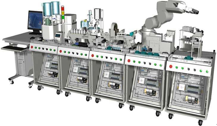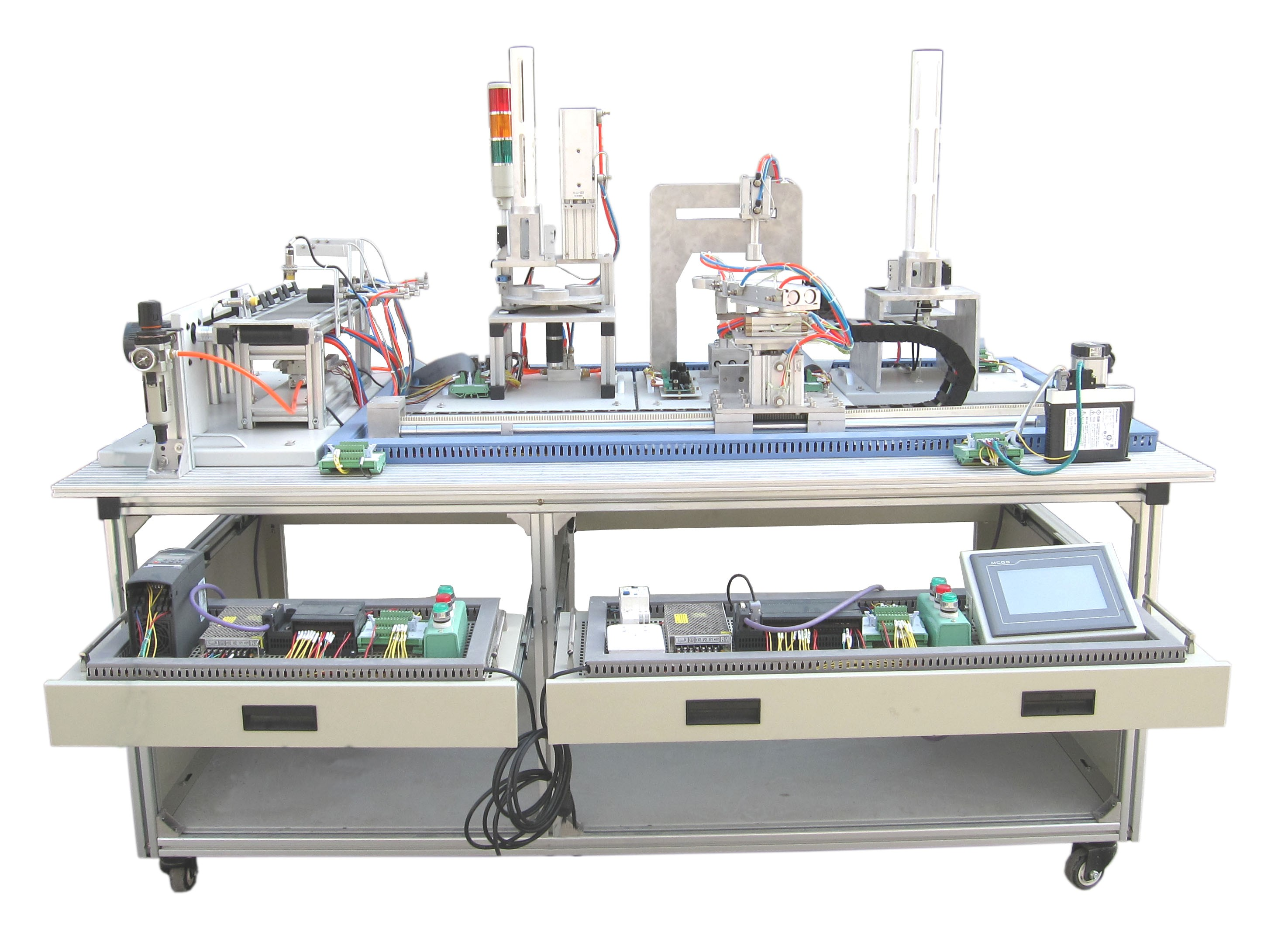 機電一體化技術實訓設備是指機械技術、電工電子技術、微電子技術、信息技術、傳感器技術、接口技術、信號變換技術等多種技術進行有機地結合,并綜合應用到實際中去的技能實訓綜合技術,現代化的自動生產設備幾乎可以說都是機電一體化的設備。自動化生產線實訓考核系統(tǒng),可以培養(yǎng)和提高學生專業(yè)綜合能力,是一種重要的實訓設備。自動化生產線實訓系統(tǒng)、基于PLC技術的自動化生產線實訓考核系統(tǒng),可以培養(yǎng)和提高學生專業(yè)綜合能力,是一種重要的實訓設備。自動化生產線實訓系統(tǒng)整體包括自動供料、檢測傳輸、檢測加工、自動裝配、自動分揀等工序,很好的將機械技術、微電子技術、電工電子技術、傳感測試技術、接口技術、信息變換技術、網.絡通信技術等多種技術有機地結合。該系統(tǒng)中自動分揀站的設計過程,包括系統(tǒng)硬件設計、PLC控制設計和程序設計方法,F代化的自動生產設備的最大特點是它的綜合性和系統(tǒng)性,在這里,機械技術、微電子技術、電工電子技術、傳感測試技術、接口技術、信息變換技術、網絡通信技術等多種技術有機地結合,并綜合應用到生產設備中:而系統(tǒng)性指的是,生產線的傳感檢測、傳輸與處理、控制、執(zhí)行與驅動等機構在微處理單元的控制下協(xié)調有序地工作,有機地融合在一起?删幊绦蚩刂破(PLC)以其高抗干擾能力、高可靠性、高性能價格比且編程簡單而廣泛地應用在現代化的自動生產設備中,擔負著生產線的大腦一微 處理單元的角色。因此,培養(yǎng)掌握機電一體化技術,掌握PLC技術及PLC網絡技術的技術人材是當務之急。而一套基于PLC技術的自動化生產線實訓考核設備可以模擬一個與實際生產情況+分接近的控制過程,使學習者得到一個非常接近于實際的教學設備環(huán)境,從而縮短了理論教學與實際應用之間的距離。自動分揀站需完成對上一單元送來的已加工、裝配的工件進行分揀。使不同顏色的工件從不同的料槽分流的功能。當輸送站送來工件放到傳送帶上并為入料口光電傳感器檢測到時,即啟動變頻器,工件開始送入分揀區(qū)進行分揀。上海碩博弘揚大國工匠精神, 發(fā)展職業(yè)教育,應用教學設備,為企業(yè)培養(yǎng)高技能人才,而專業(yè)生產:光機電一體化(自動生產線)實訓裝置、灌裝自動化生產線實訓裝置、工業(yè)自動生產線實訓裝置 、工業(yè)控制模擬實訓裝置 、機電一體化組合實訓平臺 、機電一體化綜合實訓考核裝置、自動化生產安裝與調試實訓裝置 、光機電一體化高速分揀實訓系統(tǒng) 、典型機電設備安裝與控制實訓裝置、模塊式柔性自動環(huán)形生產線實驗系統(tǒng)(帶機器人工程型)、立體停車庫實物教學實驗裝置、機電一體化柔性生產線加工實訓系統(tǒng)(5站)、網絡型模塊式柔性自動化生產線實驗系統(tǒng)、模塊式柔性自動環(huán)形生產線實驗系統(tǒng)(工程型)、柔性生產制造實驗系統(tǒng)(工程型)、現代物流倉儲自動化實驗系統(tǒng)、運動實訓裝置、循環(huán)搬運自動控制實訓裝置、平面雙軸運行控制實訓裝置、工業(yè)機械手實訓裝置、物料分揀實訓裝置、機械手實訓裝置 、立體倉庫實訓裝置、十字路口交通燈實訓系統(tǒng)、機電液氣一體化綜合實訓裝置、光機電一體化高速分揀實訓系統(tǒng)、步進伺服控制綜合實訓平臺、光機電氣一體化控制實訓系統(tǒng)、 光機電一體化綜合實訓考核裝置、光機電一體化實訓考核裝置、光機電一體化實訓考核裝置、光機電氣一體化控制實訓系統(tǒng)、自動生產線拆裝與調試實訓裝置、柔性自動化生產線實訓系統(tǒng)。