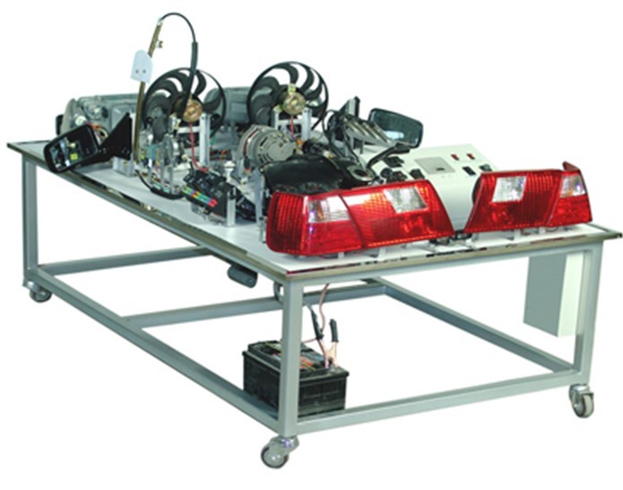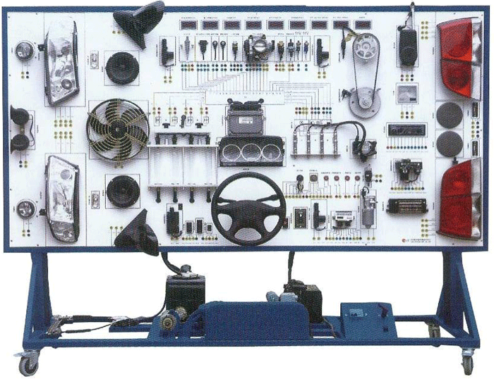 汽車電氣設(shè)備實(shí)訓(xùn)室。汽車電器設(shè)備實(shí)訓(xùn)室包含有汽車燈光系統(tǒng)、車載網(wǎng)絡(luò)系統(tǒng)、全車電器系統(tǒng)、汽車啟動(dòng)系統(tǒng)、汽車空調(diào)系統(tǒng)、全車線路試驗(yàn)臺(tái)、等實(shí)訓(xùn)教學(xué)設(shè)備。該實(shí)訓(xùn)室可以承擔(dān)《汽車構(gòu)造》、《汽車電器設(shè)備》、《汽車電控系統(tǒng)》、《汽車檢測與診斷》等課程的實(shí)踐教學(xué)任務(wù)?梢杂糜谘芯俊⒎治鋈囯娖飨到y(tǒng)、燈光系統(tǒng)、儀表系統(tǒng)等電器設(shè)備的電路及功能。利用這些系統(tǒng)進(jìn)行實(shí)踐教學(xué),使學(xué)生熟悉汽車電器的結(jié)構(gòu)和工作原理,掌握各個(gè)系統(tǒng)的基本組成電路,掌握主要電路的檢測方法和系統(tǒng)的故障特征,從而具有一定的檢測和調(diào)校能力。