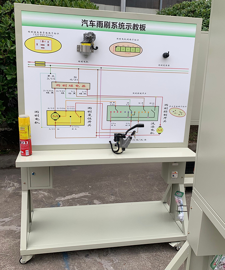 2.示教板面板采用耐創(chuàng)擊、耐污染、防火、防潮的高級鋁塑板,表面經(jīng)特殊工藝噴涂底漆處理;學(xué)校學(xué)員可直觀對照電路圖和實(shí)物,認(rèn)識和分析汽車雨刮和清洗系統(tǒng)的工作原理。