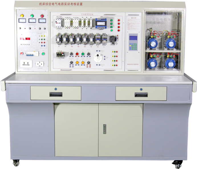 機(jī)床電氣控制實(shí)訓(xùn)室設(shè)備是機(jī)電設(shè)備維修與管理、電氣自動(dòng)化技術(shù)等專業(yè)學(xué)生的實(shí)訓(xùn)場(chǎng)所,通過(guò)實(shí)驗(yàn)、實(shí)訓(xùn),使學(xué)生掌握工廠常用的各類型設(shè)備的電路維護(hù)檢修。如鉆床控制電路、車床控制電路、銑床控制電路、磨床控制電路及鏜床控制電路等。主要產(chǎn)品有普通車床、萬(wàn)能銑床、萬(wàn)能外圓磨床實(shí)訓(xùn)考核裝置,可開(kāi)展機(jī)床常用電器及選擇、機(jī)床繼電器控制電路的基本環(huán)節(jié)、典型機(jī)床繼電器控制系統(tǒng)的分析和設(shè)計(jì)方法、機(jī)床維修等實(shí)訓(xùn)內(nèi)容。機(jī)床電氣控制實(shí)訓(xùn)室設(shè)備面向?qū)I(yè)、機(jī)電一體化技術(shù)、機(jī)械制造與自動(dòng)化、電氣自動(dòng)化技術(shù)專業(yè) 、實(shí)訓(xùn)目的、通過(guò)實(shí)驗(yàn)實(shí)訓(xùn)使學(xué)生掌握典型機(jī)床電氣控制系統(tǒng)的安裝、調(diào)試及維護(hù)的操作技能,提高學(xué)生的動(dòng)手能力。本實(shí)訓(xùn)室還可用高級(jí)維修電工技能鑒定的培訓(xùn)和考核。 機(jī)床電氣技能實(shí)訓(xùn)考核鑒定裝置、主要實(shí)訓(xùn)項(xiàng)目及功能 、主要承擔(dān)《機(jī)床電氣控制系統(tǒng)運(yùn)行與維護(hù)》、《常用電氣設(shè)備控制檢修與維護(hù)》、《高級(jí)維修電工考證培訓(xùn)》等課程實(shí)訓(xùn)、實(shí)驗(yàn)教學(xué)以及相關(guān)的職業(yè)技能鑒定,可開(kāi)展實(shí)訓(xùn)項(xiàng)目: CA6140車床電氣控制線路的安裝、調(diào)試及維護(hù)。 X62W萬(wàn)能銑床電氣控制線路的安裝、調(diào)試及維護(hù)。 Z3040搖臂鉆床電氣控制線路的安裝、調(diào)試及維護(hù)。 電動(dòng)葫蘆電氣控制線路的安裝、調(diào)試及維護(hù)。 職業(yè)技能培訓(xùn)及鑒定、考證。 機(jī)床電氣技能實(shí)訓(xùn)考核裝置、C6140 普通車床電氣技能實(shí)訓(xùn)考核裝置(半實(shí)物)、M1432 萬(wàn)能外圓磨床電氣技能實(shí)訓(xùn)考核裝置(半實(shí)物)、M7120 平面磨床電氣技能實(shí)訓(xùn)考核裝置(半實(shí)物)|網(wǎng)絡(luò)型平面磨床電氣技能實(shí)訓(xùn)智能考核裝置、PDH 電動(dòng)葫蘆電氣技能實(shí)訓(xùn)考核裝置(半實(shí)物)、機(jī)床電氣技能實(shí)訓(xùn)考核鑒定裝置、T68 臥室鏜床電氣技能實(shí)訓(xùn)考核裝置(半實(shí)物)、X62W 型萬(wàn)能銑床電氣技能實(shí)訓(xùn)考核裝置 ( 半實(shí)物 )、Z3040 搖臂鉆床電氣技能實(shí)訓(xùn)考核裝置(半實(shí)物)、C650-2 普通車床電氣技能培訓(xùn)考核實(shí)驗(yàn)裝置|網(wǎng)絡(luò)型普通車床電氣技能實(shí)訓(xùn)智能考核裝置、M7130K型 平面磨床電氣技能培訓(xùn)考核實(shí)驗(yàn)裝置、網(wǎng)絡(luò)型平面磨床電氣技能實(shí)訓(xùn)智能考核裝置、PBA龍門刨床電氣技能培訓(xùn)考核實(shí)驗(yàn)裝置、網(wǎng)絡(luò)型龍門刨床電氣技能實(shí)訓(xùn)智能考核裝置、綜合機(jī)床電氣電路實(shí)訓(xùn)考核鑒定裝置(四個(gè)機(jī)床電路)、 綜合機(jī)床電氣電路實(shí)訓(xùn)考核鑒定裝置(四個(gè)機(jī)床電路)、T68 臥式鏜床實(shí)訓(xùn)及技能考核裝置、網(wǎng)絡(luò)型臥式鏜床電氣技能實(shí)訓(xùn)智能考核裝置、機(jī)床電氣控制技術(shù)及工藝實(shí)訓(xùn)考核裝置、機(jī)床電氣實(shí)驗(yàn)臺(tái)、網(wǎng)孔型萬(wàn)能機(jī)床電路實(shí)訓(xùn)考核鑒定裝置、網(wǎng)孔型萬(wàn)能機(jī)床電路實(shí)訓(xùn)考核鑒定裝置(含 PLC 、變頻器)、X62W萬(wàn)能銑床實(shí)訓(xùn)及技能考核裝置、網(wǎng)絡(luò)型萬(wàn)能銑床電氣實(shí)訓(xùn)智能考核裝置、Z3040B搖臂鉆床電氣技能培訓(xùn)考核實(shí)驗(yàn)裝置、網(wǎng)絡(luò)型搖臂鉆床電氣技能實(shí)訓(xùn)智能考核裝置、機(jī)床電氣電路仿真實(shí)訓(xùn)考核裝置、機(jī)床電器電路實(shí)驗(yàn)臺(tái)、網(wǎng)絡(luò)化智能型機(jī)床電氣技能實(shí)訓(xùn)考核裝置。