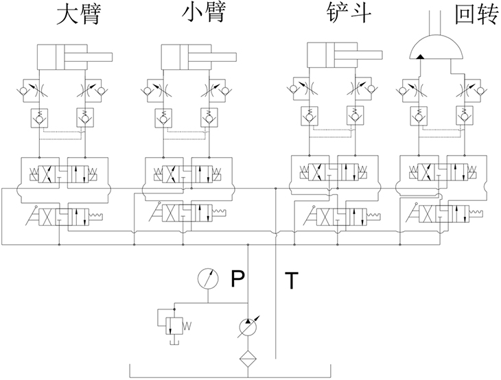 1.采用一體式結構設計,油箱、閥體、工作裝置整合一起。