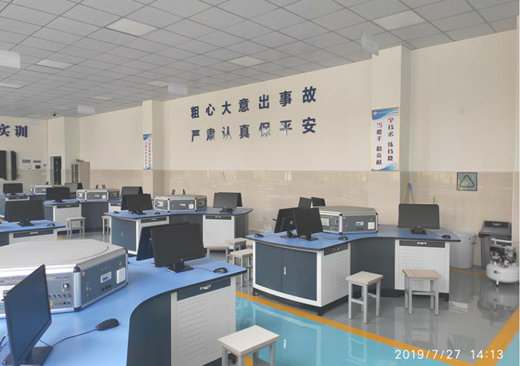 技能工作島由三邊弧形工作臺、六邊形實訓控制屏及典型工作任務(wù)組成,能同時容納6名學生在設(shè)備上進行操作。
