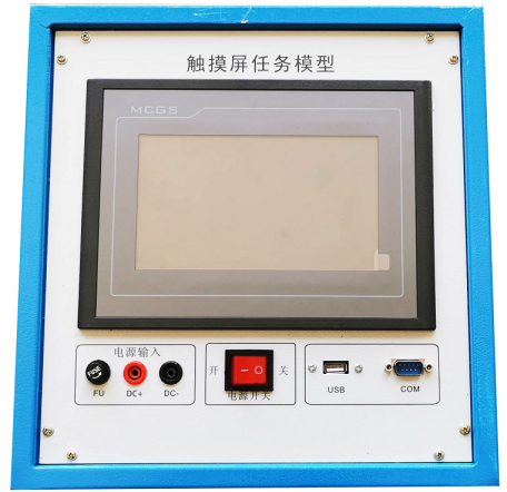 該任務(wù)盒有1.2mm優(yōu)質(zhì)鋼板加工噴涂制作,面板有鋁板加工沖孔而成,表面貼膜制作,觸摸屏采用表面卡嵌式安裝,引出觸摸屏通訊接口與電源,便于實訓,易于觸摸屏的保護及搬運。