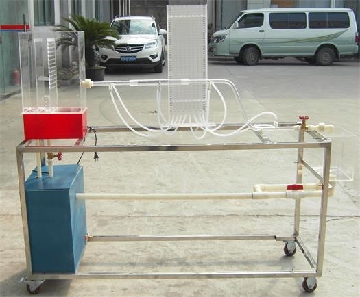 主要配置:移動式不銹鋼實驗臺;有機玻璃整流穩(wěn)壓水箱;高位突擴突縮粗、細(xì)管,閥門;測壓板;實驗管道及控制閥門;計量箱;水箱;防腐潛水泵等。