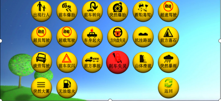 (3)雪天駕駛:突出冰雪路面的轉(zhuǎn)向、制動(dòng)與控制車速的操作方法,針對(duì)雪天駕駛?cè)菀装l(fā)生汽車側(cè)滑、甩尾情況指出操作要領(lǐng),真實(shí)模擬雪花與玻璃的碰撞、視線的漸變、雨刮刮過的效果、車外后視鏡的模糊等,重點(diǎn)是路面的選擇、汽車的轉(zhuǎn)向與制動(dòng)等;
