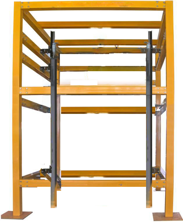 電梯井道實訓裝置采用真實的電梯轎廂導軌、轎廂架、轎廂緩沖器、對重導軌、護欄、對重緩沖器等器件,學生借助電梯井道系統(tǒng)設計圖在模擬井道頂部放樣線并對井道設備按順序進行安裝與測量,使其符合規(guī)范要求,并通過轎廂架和對重架的上下運動模擬其在井道導軌上的運行并輔助檢驗導軌實際安裝質(zhì)量。