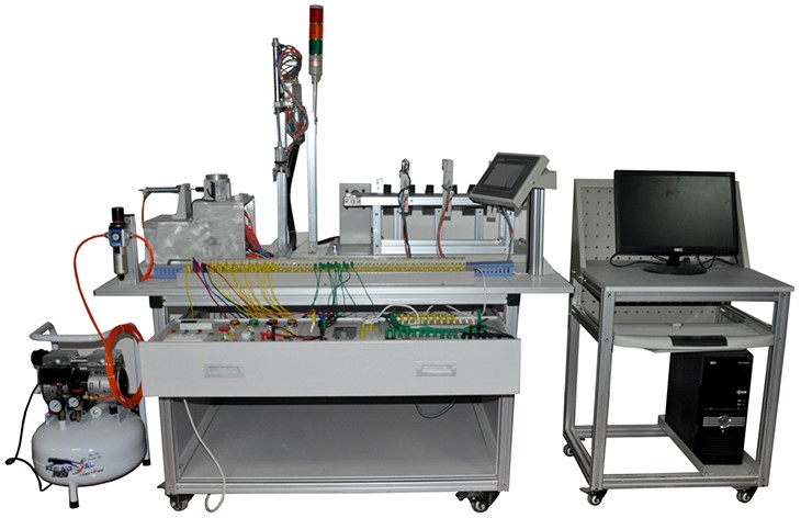本設(shè)備主要包括實(shí)訓(xùn)臺架、典型的機(jī)電一體化設(shè)備的機(jī)械部件、PLC模塊、變頻器模塊、按鈕模塊、電源模塊、模擬生產(chǎn)設(shè)備實(shí)訓(xùn)模塊、接線端子排和各種傳感器等組成。整體結(jié)構(gòu)采用開放式和拆裝式,實(shí)訓(xùn)裝置用于機(jī)械部件組裝,可根據(jù)現(xiàn)有的機(jī)械部件組裝生產(chǎn)設(shè)備,也可添加機(jī)械部件組裝其他生產(chǎn)設(shè)備,使整個(gè)裝置能夠靈活的按教學(xué)或競賽要求組裝具有生產(chǎn)功能的機(jī)電一體化設(shè)備。