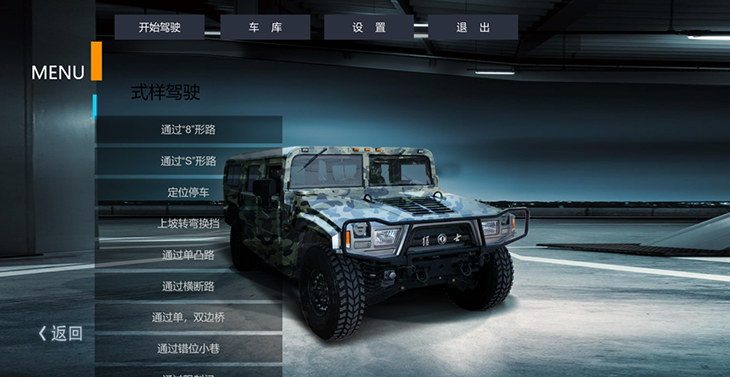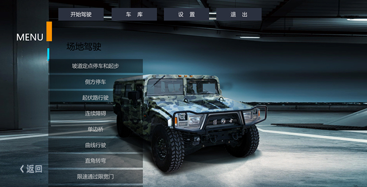 7.3、仿真場地庫:設有單邊橋、隧道、掩體、錯位小巷、高架橋、"8"字型路、"S" 型路、鐵路平車、直角轉彎、弧線倒車、直線倒車、倒車移位、側方停車、漸窄門等訓練課目;快速路、卵石路、橫斷路、盤山路等常見道路場景,滑坡、落石等模擬障礙物;具有良好的擴展性,可根據實際需要進行個性化定制。