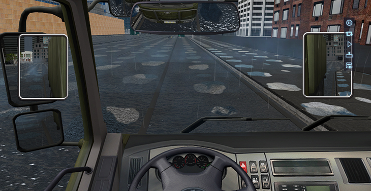 模擬器右邊10寸觸摸屏: 確定、返回、上下左右功能鍵選擇,車內和車外景切換。