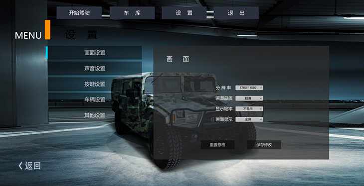 7.2、汽車設置界面:調整車輛各項動力學參數、車輛后視鏡及視角調整。