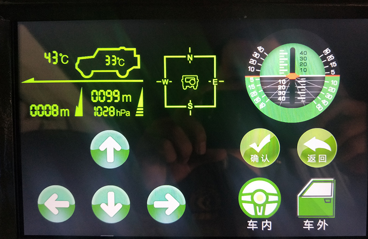 模擬器右邊觸摸屏: 確定、返回、上下左右功能鍵選擇,車內和車外景切換。