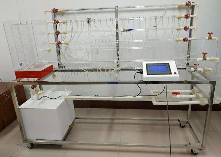 雷諾實驗管、伯努利實驗管、沿程阻力管、局部阻力管、水泵、秒表、玻璃溫度計、測壓計、刻度標尺、文丘里流量計、實驗水箱、計量水箱、蓄水箱、指示液盒、不銹鋼框架。