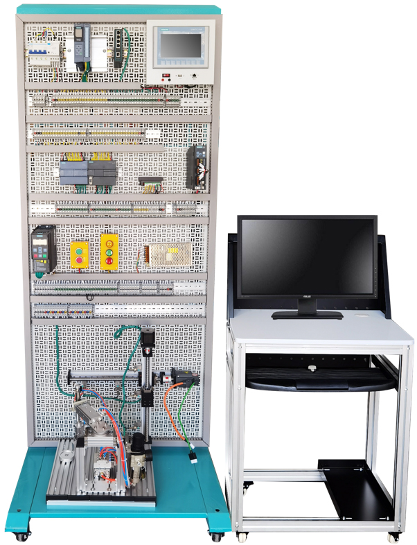 3)電氣控制系統(tǒng)∶ 開放式工業(yè)機架結(jié)構(gòu),含成套器件;面板采用網(wǎng)孔板形式,4 只萬向輪(2 只帶剎車)?蓪 PLC、電源、變頻器、觸摸屏等安放在該平臺上,配有空氣開關(guān)、接線端子、電纜線、輔料,接地可靠,設(shè)有漏電等保護裝置,安全性符合相關(guān)的國標標準,保護學(xué)生在實訓(xùn)過程中的安全性。采用工業(yè)規(guī)范制作,所有接線有標號,便于實訓(xùn)和日常維護。