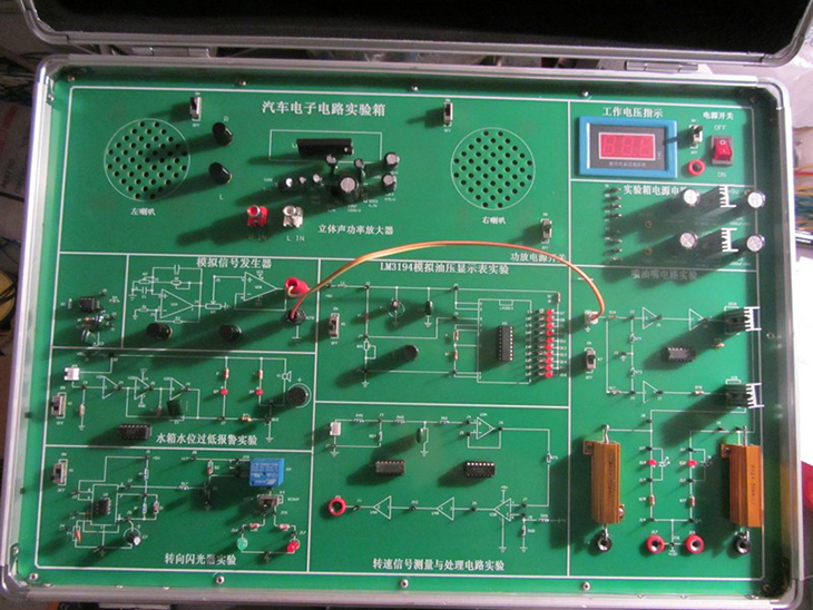 汽車電子電路實(shí)驗(yàn)箱結(jié)合汽車電學(xué)的典型基本電路,由淺到深地設(shè)計(jì)了二極管和三極管基本實(shí)驗(yàn)、線性集成穩(wěn)壓電源實(shí)驗(yàn)、噴油器驅(qū)動(dòng)實(shí)驗(yàn)、轉(zhuǎn)速信號測量與處理實(shí)驗(yàn)、水箱水位過低報(bào)警實(shí)驗(yàn)、轉(zhuǎn)向閃光器實(shí)驗(yàn)等六個(gè)實(shí)驗(yàn)項(xiàng)目,提供了一個(gè)給學(xué)生提高動(dòng)手能力,深入理解汽車電學(xué)基礎(chǔ)知識(shí)的實(shí)驗(yàn)平臺(tái)。