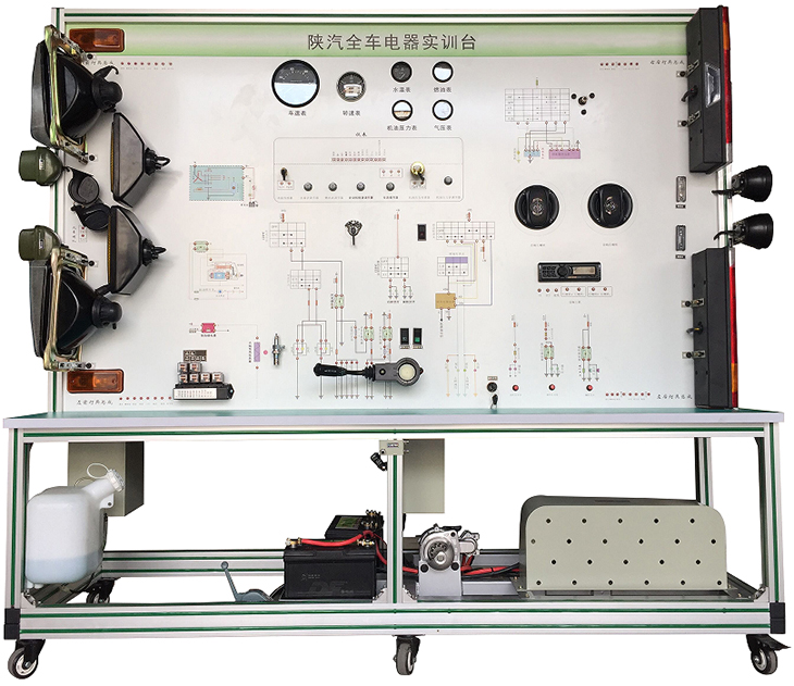 全車電路實訓(xùn)臺、該設(shè)備采用陜汽SX2190柴油機整車電器實物為基礎(chǔ),充分展示汽車儀表系統(tǒng)、燈光系統(tǒng)、雨刮系統(tǒng)、喇叭系統(tǒng)、發(fā)動機電器系統(tǒng)、起動系統(tǒng)和充電系統(tǒng)等汽車電器各系統(tǒng)的組成結(jié)構(gòu)和工作過程。
