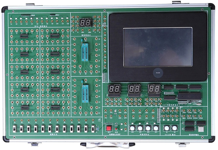 數(shù)字邏輯測試實驗箱由鋁木合金箱體、開關(guān)電源、常用信號源、實驗電路區(qū)和邏輯示波器等組成。其中常用信號源由高性能單片機89C51產(chǎn)生,信號穩(wěn)定可靠。全部的實驗用信號線的連接采用自鎖緊鍍金插頭座,接觸可靠。配置8路邏輯示波器自帶嵌入式CPU SMT32和7.5寸液晶屏,有效地提高設(shè)備的綜合利用率。數(shù)字邏輯測試實驗箱適用于本?、高職高專院校所有電類和非電類專業(yè)《數(shù)字電子技術(shù)》課程的實驗、實訓和自行設(shè)計。
