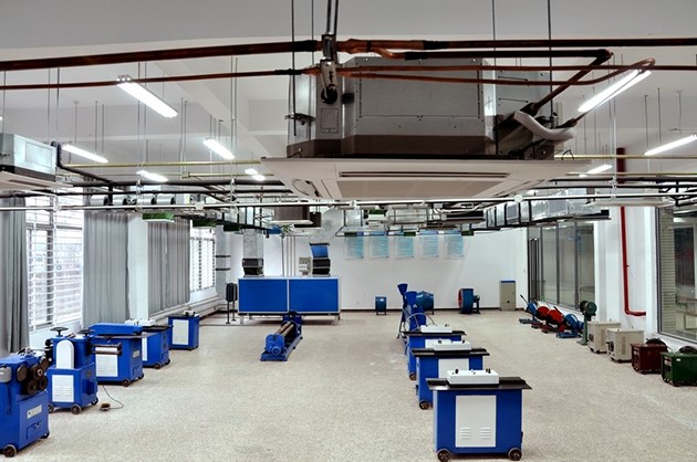 3.組合式空調(diào)機(jī)組、新風(fēng)機(jī)組、風(fēng)機(jī)盤管、冷卻塔、風(fēng)機(jī)、消聲器、多聯(lián)機(jī)、滾剪機(jī)、咬口機(jī)、卷圓機(jī)、合縫機(jī)等主要設(shè)備,組成一次回風(fēng)式空調(diào)系統(tǒng)、新風(fēng)加風(fēng)機(jī)盤管空調(diào)系統(tǒng)、排風(fēng)系統(tǒng)、多聯(lián)機(jī)空調(diào)系統(tǒng)等四個(gè)系統(tǒng),可以承擔(dān)組合式空調(diào)機(jī)組安裝、冷卻塔安裝、新風(fēng)機(jī)組安裝、風(fēng)機(jī)盤管安裝、風(fēng)機(jī)安裝、多聯(lián)機(jī)安裝、風(fēng)口安裝、風(fēng)管制作等8個(gè)實(shí)訓(xùn)項(xiàng)目。