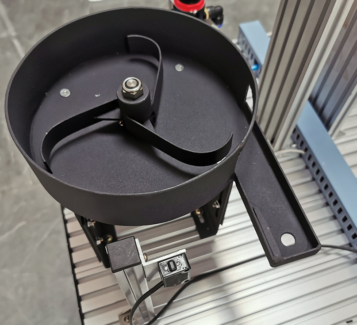 放料轉(zhuǎn)盤(pán):轉(zhuǎn)盤(pán)中共放三種物料,一種金屬物料、一種黑色塑料物料、一種白色塑料物料。