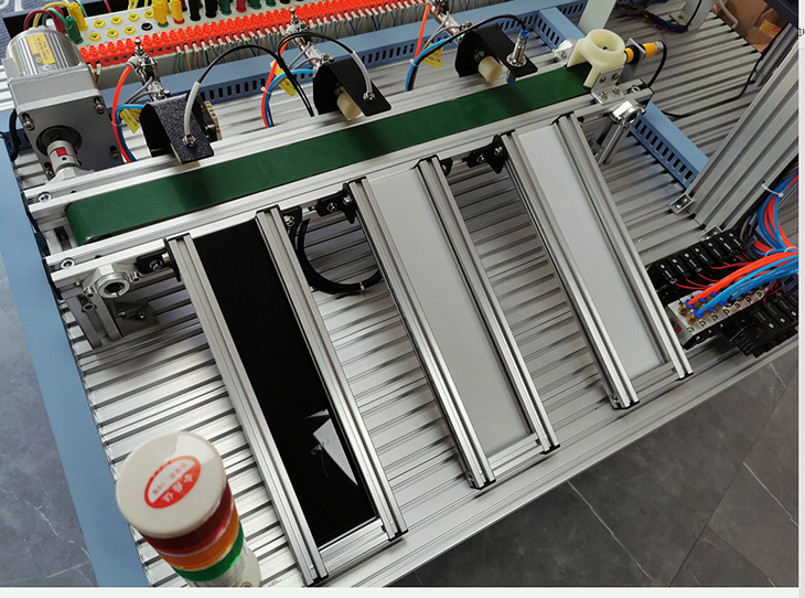 模塊、變頻器模塊、按鈕模塊、電源模塊、模擬生產(chǎn)設(shè)備實(shí)訓(xùn)模塊(包含上料單元、皮帶輸送檢測(cè)單元、氣動(dòng)機(jī)械手搬運(yùn)單元、物料傳送倉(cāng)儲(chǔ)單元)、觸摸屏、接線端子排和各種傳感器等組成。采用開(kāi)放式和拆裝式結(jié)構(gòu),可根據(jù)現(xiàn)有的機(jī)械部件組裝生產(chǎn)設(shè)備,使整個(gè)裝置能夠靈活的按實(shí)訓(xùn)教學(xué)或競(jìng)賽要求組裝具有生產(chǎn)功能的光機(jī)電一體化設(shè)備。模塊采用工業(yè)標(biāo)準(zhǔn)結(jié)構(gòu)及抽屜式模塊放置架,互換性強(qiáng)。