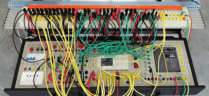 3.開(kāi)放性:該實(shí)驗(yàn)裝置PLC模塊I/O端子、變頻器的接線端子、各常用模塊與PLC的連接端子、傳感器、按鈕開(kāi)關(guān)、指示燈元件等端子全部開(kāi)放,均采用護(hù)套插座導(dǎo)線連接,可進(jìn)行電氣線路控制、電氣線路設(shè)計(jì)等內(nèi)容實(shí)訓(xùn)。