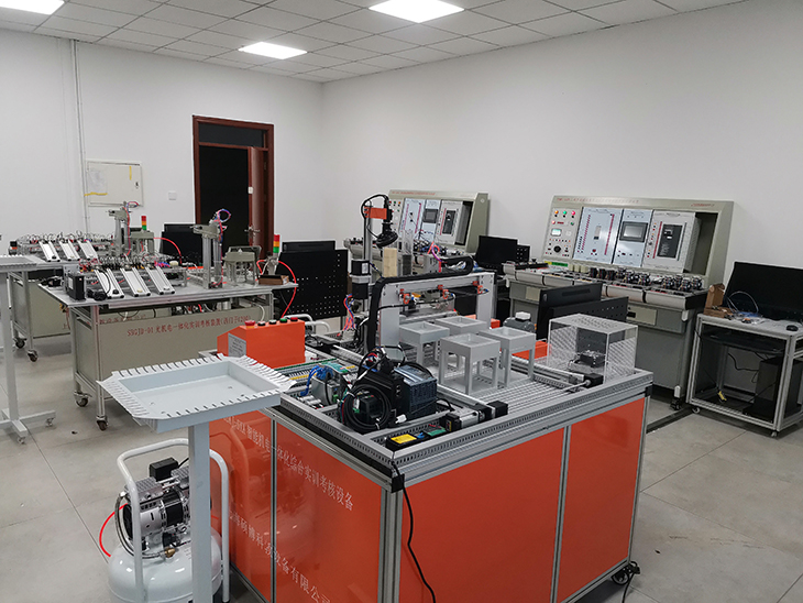 機電一體化實驗實訓(xùn)裝置、PLC與自動化實驗實訓(xùn)室設(shè)備自動化生產(chǎn)線實訓(xùn)室、氣動控制實訓(xùn)室、伺服控制實訓(xùn)室、過程控制實訓(xùn)室、仿真控制實訓(xùn)室、自動化創(chuàng)新工作室等;能提供可編程控制技術(shù)、交流伺服驅(qū)動技術(shù)、人機界面技術(shù)、多自由度機械臂技術(shù)、網(wǎng)絡(luò)控制技術(shù)、自動化物流管理、虛擬仿真等自動化領(lǐng)域核心技術(shù)的實踐訓(xùn)練;教學(xué)項目涵蓋單項技能訓(xùn)練、綜合技能提升、創(chuàng)新設(shè)計能力培養(yǎng)、自動化新技術(shù)應(yīng)用等多個層面,為滿足學(xué)生技能訓(xùn)練、教師實踐能力培養(yǎng)、企業(yè)員工培訓(xùn)、技術(shù)研發(fā)與服務(wù)提供了有力保障。機電一體化實驗實訓(xùn)平臺、PLC與自動化實訓(xùn)室設(shè)備是《PLC控制技術(shù)》、《變頻器控制技術(shù)》、《組態(tài)控制技術(shù)》等課程的教學(xué)實驗實訓(xùn)、課程設(shè)計、自動化綜合實訓(xùn)及創(chuàng)新設(shè)計等實踐基地,也是技能培訓(xùn)的教學(xué)平臺。滿足學(xué)生進行PLC實訓(xùn)、課程設(shè)計、畢業(yè)設(shè)計等需求。機電一體化實驗實訓(xùn)平臺、PLC與自動化實訓(xùn)室設(shè)備主要功能是為學(xué)生提供可編程邏輯控制器(PLC)的相關(guān)實訓(xùn)與實訓(xùn)操作環(huán)境,幫助學(xué)生深入理解PLC的工作原理、編程方法、以及在工業(yè)自動化領(lǐng)域的應(yīng)用。
