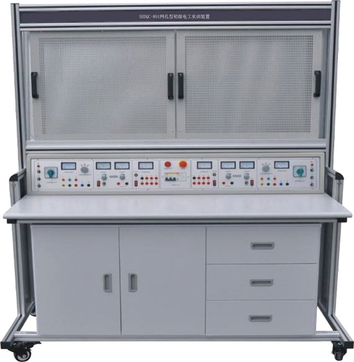 初級維修電工實訓室設(shè)備可作為維修電工考核裝置,有可在網(wǎng)孔板上進行照明器件及線路的安裝,電工儀表測量線路的安裝、電工儀表測量線路的安裝、配電盤的裝配訓練,電動機的控制線路安裝訓練。